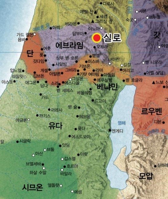 (수 18:1) 이스라엘 자손의 온 회중이 실로에 모여서 거기에 회막을 세웠으며 그 땅은 그들 앞에서 돌아와 정복되었더라